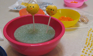 The spring chicken experiment has been concluded, and I suppose you could say it was a success. We certainly gave it our best shot, but we are not–either of us–Bakerella. And our ingredients left a little something to be desired. Excuses, excuses, I know. That said, we had great fun making the little chicks and a few super-cute bunnies. And everyone I know that tried one thought they were delicious. But they’re kind of labor intensive–hopefully part of that is our beginner status. I think I will definitely give these another shot.
