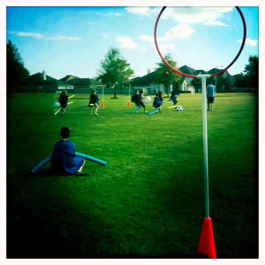 This afternoon we hosted our 2nd Annual Halloween Muggle Quidditch Match, and although it was touch-and-go there for a little bit with all the last minute sick cancellations, it really turned out great. The whole concept is foreign, and the requirements are pretty awkward, what with the capes and the pool noodles and the water/air filled beach balls getting tossed around, but the kids totally run with it, and it is really very fun to watch.