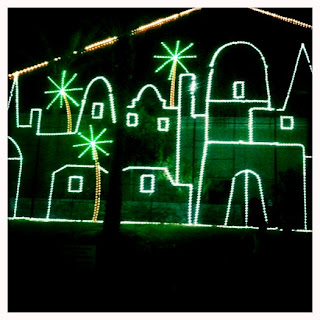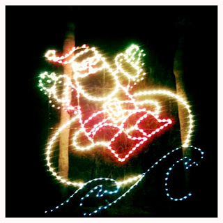 at Moody Gardens in Galveston. Yes, that’s Santa on a floatie. We had perfect weather (at least for me)…high sixties. The boys wore those funky fold-up cardboard glasses that make every Christmas light look like a snowflake, a Santa face, or an alien head. A good, giggling time was had by all.
